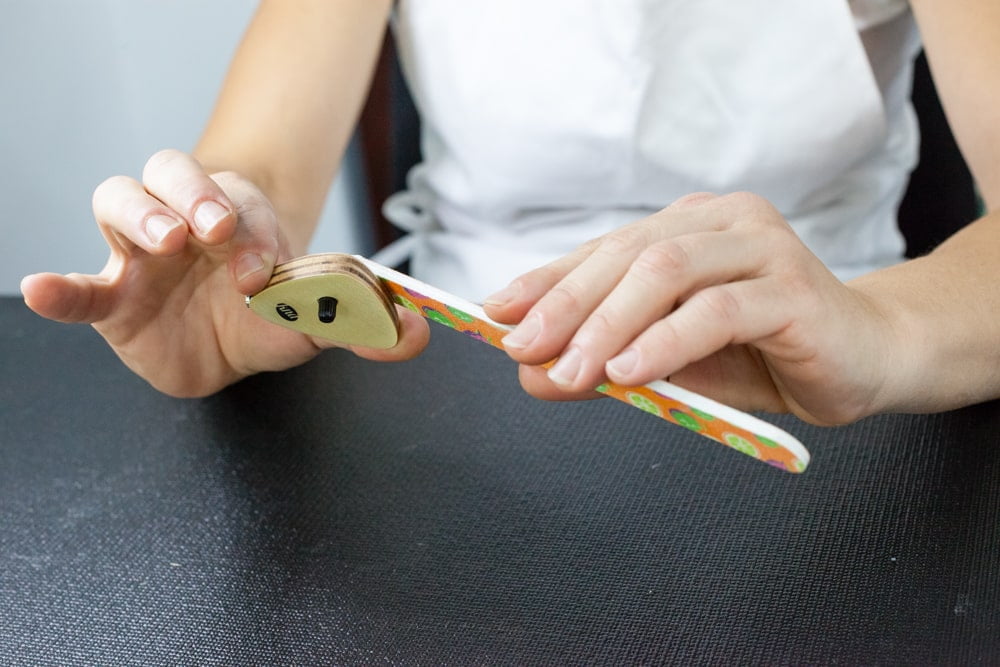 Lijado a mano en el taller.